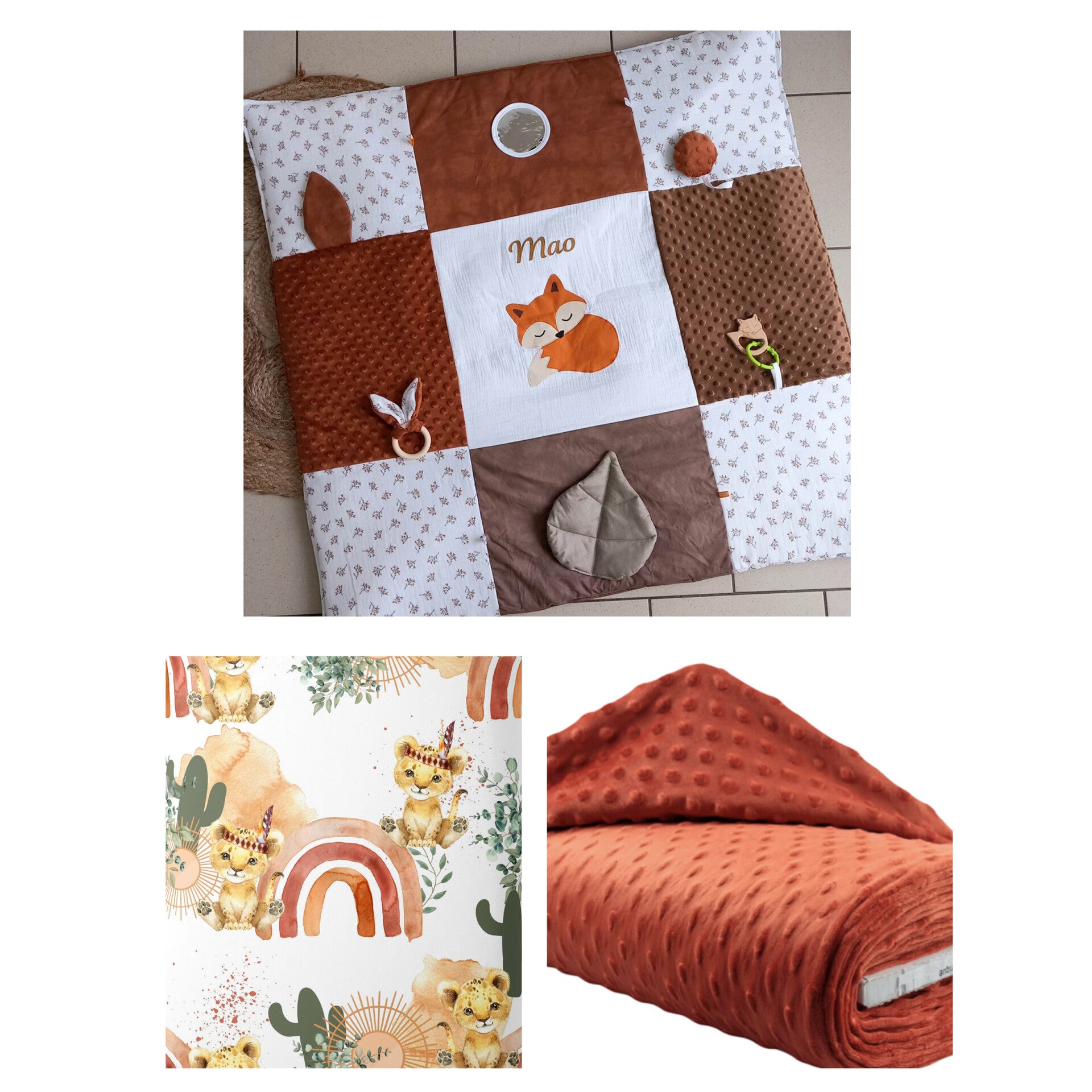 Tapis de jeu réalisé avec les tissus ci-dessus + de nombreux accessoires et zones sensorielles.